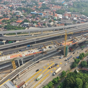 雅万高铁2号特大桥全长36公里,由中国电建水电八局负责施工。该地段紧邻雅加达到万隆高速公路,地形环境复杂。施工人员密集设置了24联连续梁,其中一联连续梁跨越3层高速公路匝道,主墩距高速公路匝道最近距离仅20cm,施工空间狭窄,是全线施工环境最复杂、受外界干扰最大的重难点控制性工程。