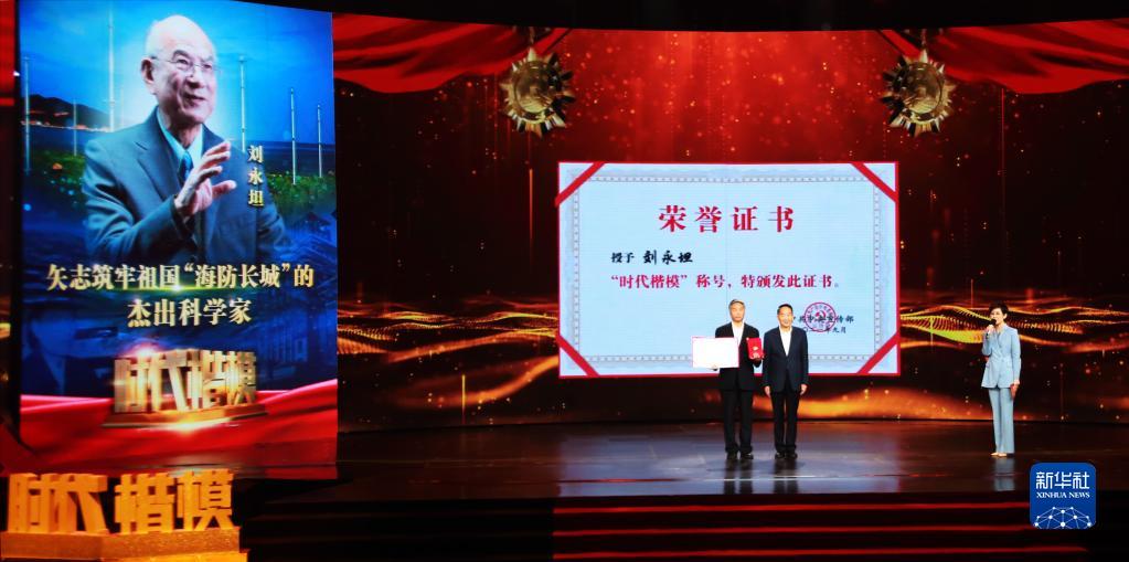 9月26日,“时代楷模”发布仪式现场宣读《中共中央宣传部关于授予刘永坦同志“时代楷模”称号的决定》。新华社记者 潘旭 摄