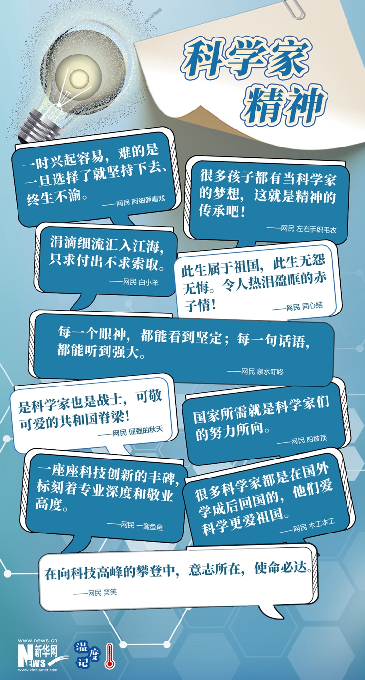 科学无国界,科学家有祖国。爱国是科学家精神的第一要义。正如网民在社交平台上所说,“此生属于祖国,此生无怨无悔”。勇攀科技高峰,就要把祖国装在心中,以科学家精神砥砺“以身许国,何事不可为”的勇毅担当,激扬“敢为天下先”的创造豪情。(文字:马若虎 海报设计:王晔)