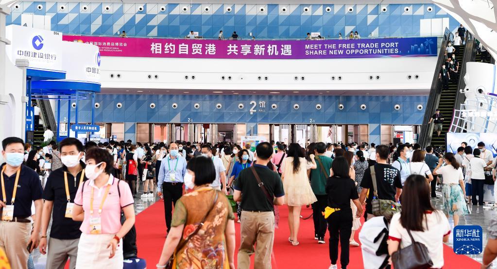 观众在海口举行的首届中国国际消费品博览会现场参观(5月9日摄)。新华社记者 杨冠宇 摄