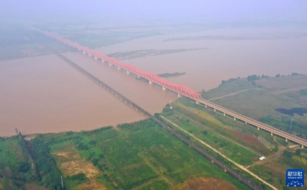 这是10月1日在河南省郑州市惠济区拍摄的黄河景色(无人机照片)。