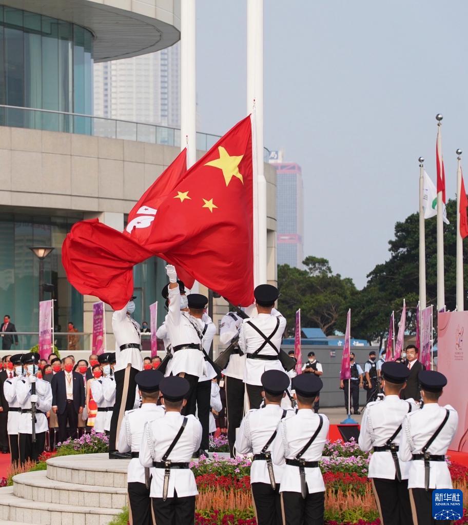 10月1日,香港特区政府在金紫荆广场举行升旗仪式。新华社记者 吕小炜 摄