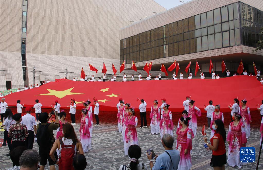 “今天是中华人民共和国成立72周年的喜庆日子,我们作为爱国爱港的香港市民社团,专门购置了这面巨幅国旗,为祖国献礼。”“香江情·中国心”社团会长李文烈说,此次庆祝活动由数十位市民自发参与,有的担任护旗手,有的担任舞蹈演员,还有的担任合唱队员。