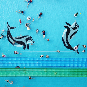 10月2日,游客在长沙世界之窗水上乐园游玩(无人机照片)。