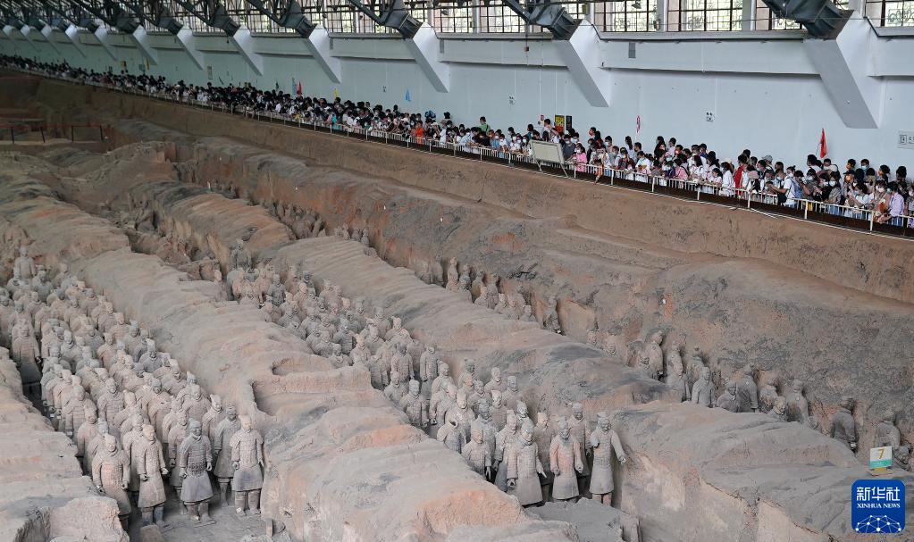 10月2日,游客在陕西西安秦始皇兵马俑博物馆参观。