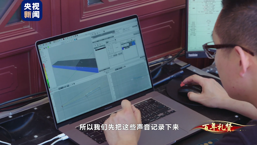 建党百年庆祝大会音响保障指挥部工作人员 周凤歆:对,固定观礼台,先是记录下来,比如说我们想把声音打到那个位置,现在低了,低了以后就会打到墙,打到墙就会带来很多的反射,那这些反射就会影响别人。所以我们先把这些声音记录下来,然后我们最后再决定是怎样调整。通过对音箱扩声的角度实行精准的控制,从而减少了广场建筑物对声音的反射干扰。而针对广场上密集分布的音箱设备,音响团队采用了分区延时方式扩音。