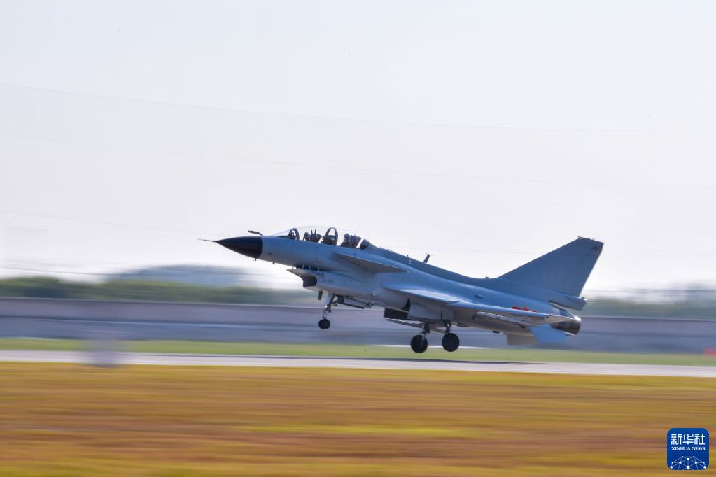 在空军石家庄飞行学院某旅机场,空军首批三代机飞行学员驾驶首批列装空军院校的歼-10战机飞上蓝天(9月10日摄)。新华社发(李敏 摄)
