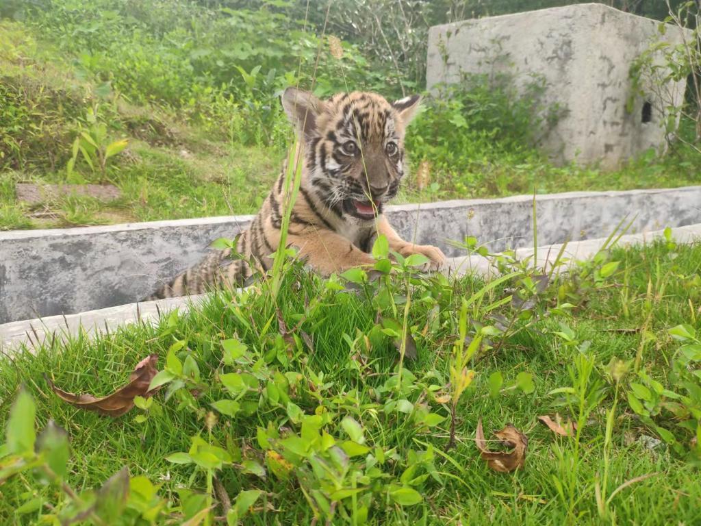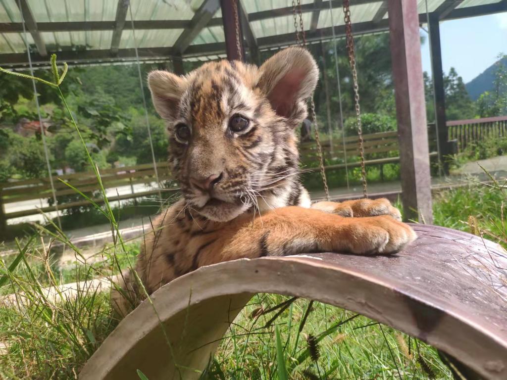 梅花山虎园今年出生的小老虎。新华社记者 秦宏 摄