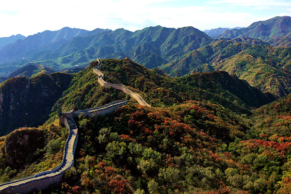 雄伟的万里长城在满山红叶的映衬下,壮美如画。新华社发 王铁忠 摄