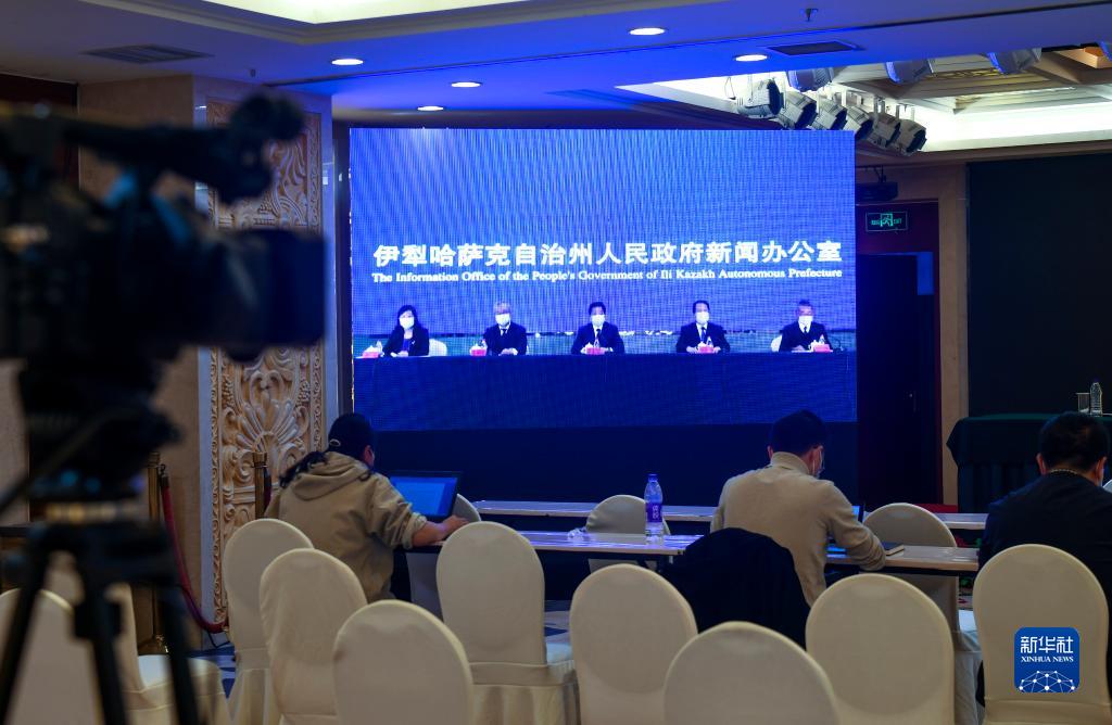 10月7日,新疆伊犁哈萨克自治州人民政府新闻办公室召开疫情防控新闻发布会。这是乌鲁木齐分会场。新华社记者 王菲 摄