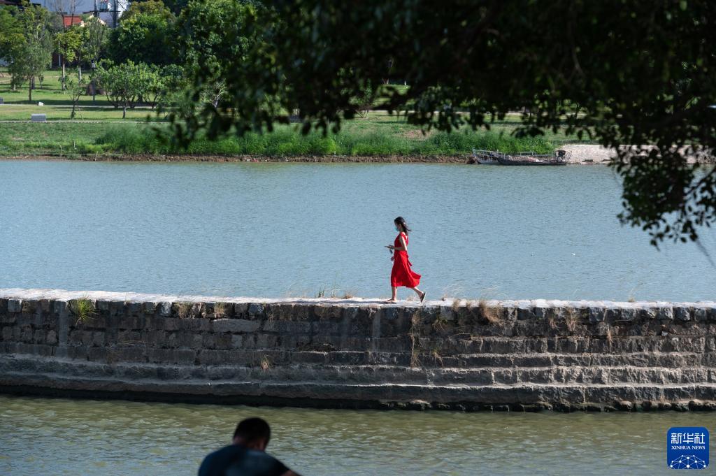 10月7日,市民在福建莆田木兰陂公园游玩。