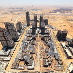 由中建埃及承建的埃及新首都中央商务区项目位于开罗以东约50公里处,总占地面积约50.5万平方米,包含20个高层建筑单体及配套市政工程。中建埃及总经理常伟才说,项目高峰期有9000多名中埃员工在这里生产和生活。