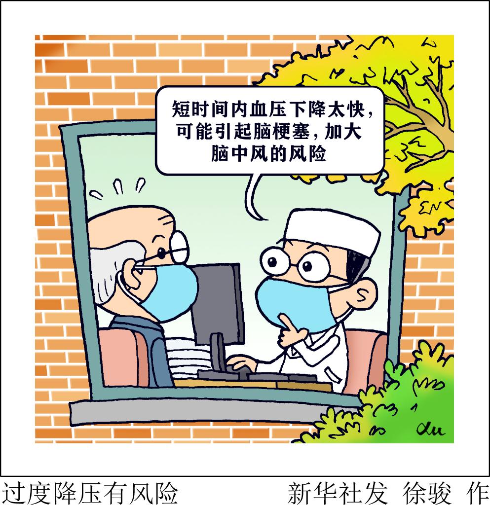 如果血压下降速度太快,血管内压力会明显下降,血流速度减慢,会引起心、脑、肾等重要脏器缺血、血流灌注明显较少,脑血管内容易形成血栓、栓塞或因其他原因导致脑供血不足,造成缺血性脑血管病。如果患者本身存在脑血管狭窄,血压过低反而会增加患缺血性脑中风的风险。专家提醒,高血压患者应在4周至8周内将血压逐渐降至目标水平,年轻、病程较短的高血压患者可较快达标。