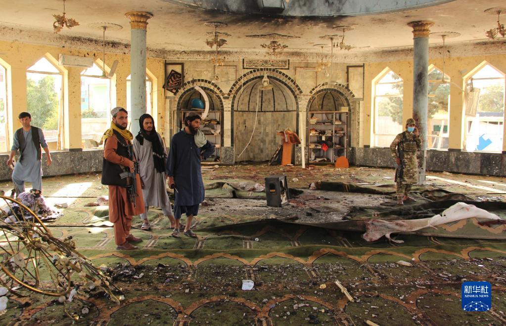 这是10月8日在阿富汗昆都士拍摄的遭爆炸袭击的清真寺。新华社发(阿杰马勒·卡卡尔摄)