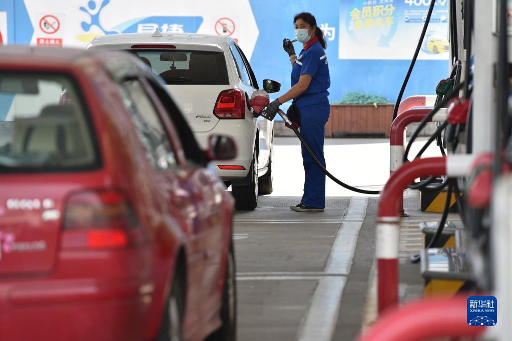 10月9日,车辆在河北省邢台市任泽区一加油站加油。新华社发(宋杰 摄)