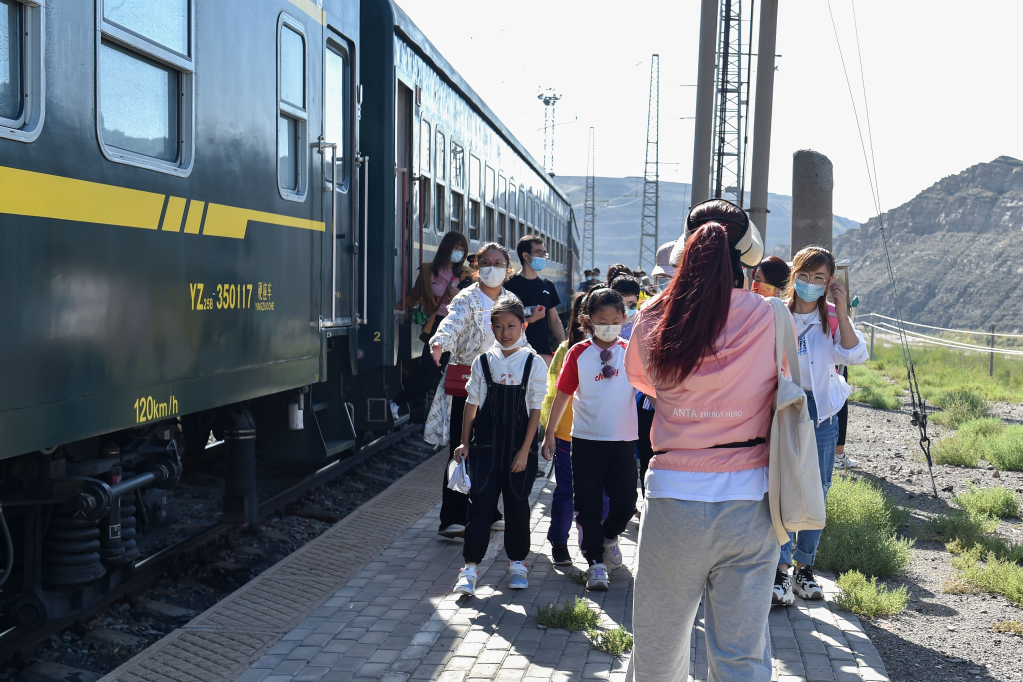 2020年,中国铁路兰州局集团有限公司银川客运段围绕“老火车、慢生活、旧时光”,将“时光慢车”打造成“石炭井号”旅游列车。乘坐列车时,记者恰好碰到一个旅游团,有些家长还专门带着孩子一同前来,他们先乘坐“时光慢车”,再转乘大巴,为的就是感受列车的历史气息。