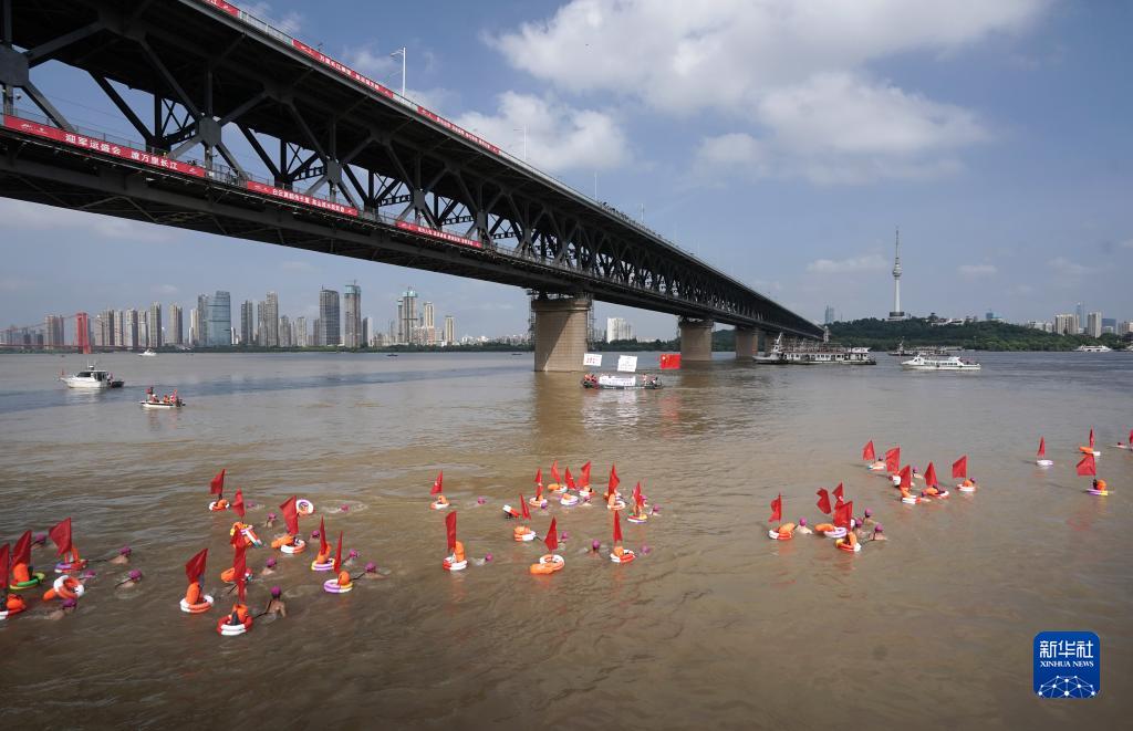 2019年7月16日,第45届武汉国际渡江节举行,参加横渡的健儿们组成方阵横渡长江。
