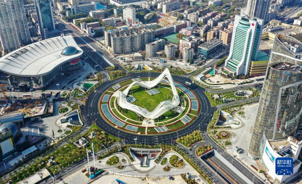 这是2020年3月15日拍摄的武汉光谷广场(无人机照片)。