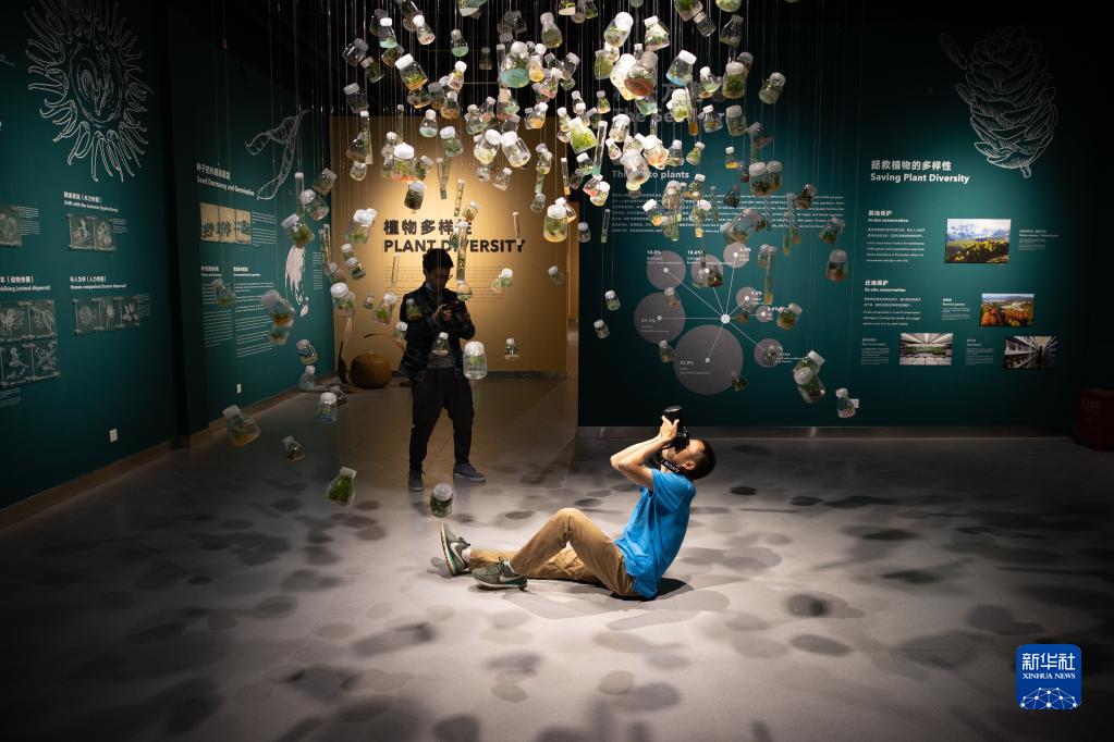 10月10日,在举行发布会的中科院生物多样性成果展现场,观众参观由种子发育而来的多样性植物样品。