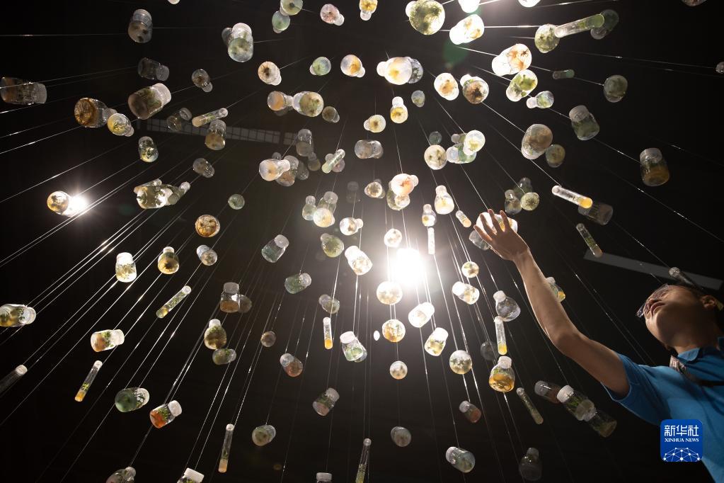 10月10日,在举行发布会的中科院生物多样性成果展现场,观众参观由种子发育而来的多样性植物样品。