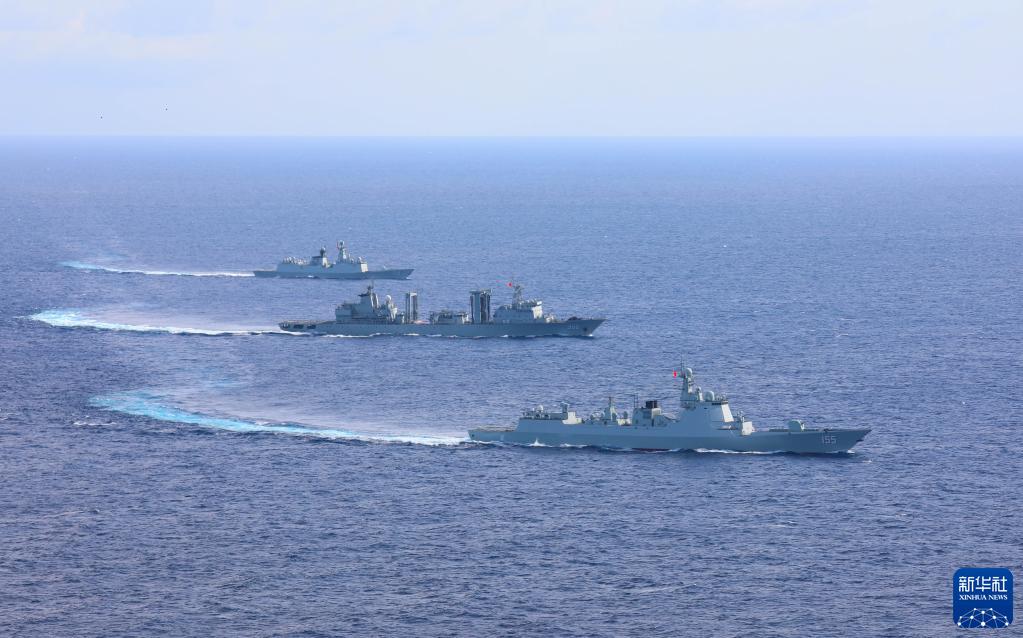 海军第38批护航编队在航渡期间组织开展编队运动(5月22日摄)。新华社发(王宗洋 摄)