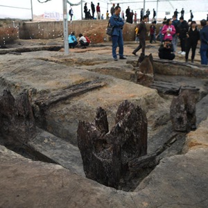 今年以来,考古工作者在这里发掘了一批大型木质结构建筑遗迹。规模之大、保存之完好,为国内罕见。
