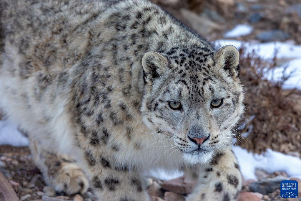 这是2018年4月14日在祁连山国家公园体制试点区青海片区拍摄的雪豹。新华社发(鲍永清摄)