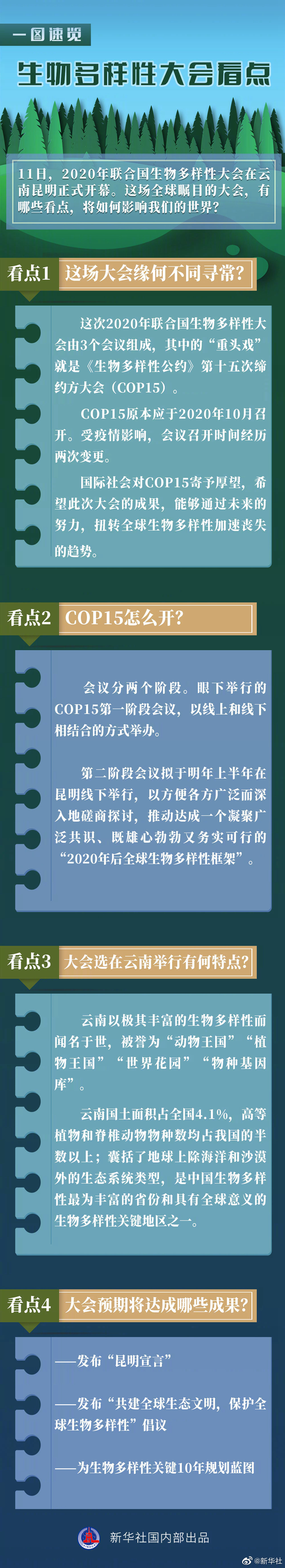 新华社昆明10月11日电 题:这场大会,为何全球瞩目?——2020年联合国生物多样性大会四大看点透视