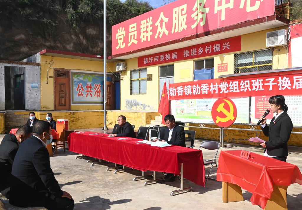 11日,经历了一个多星期的连阴雨后,山西省汾西县勍香镇勍香村终于迎来了久违的太阳。一大早,红色旗帜和标语装点的村委会大院里,满满当当坐了一院人,大家静静等待着村党支部委员换届选举会的开始。