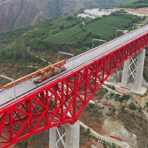 (铺轨机在中老铁路元江双线特大桥施工。中铁一局供图)