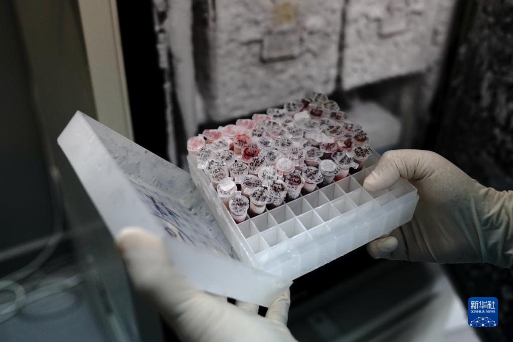 10月11日,上海动物园科研人员展示冷冻保存的华南虎基因样品。