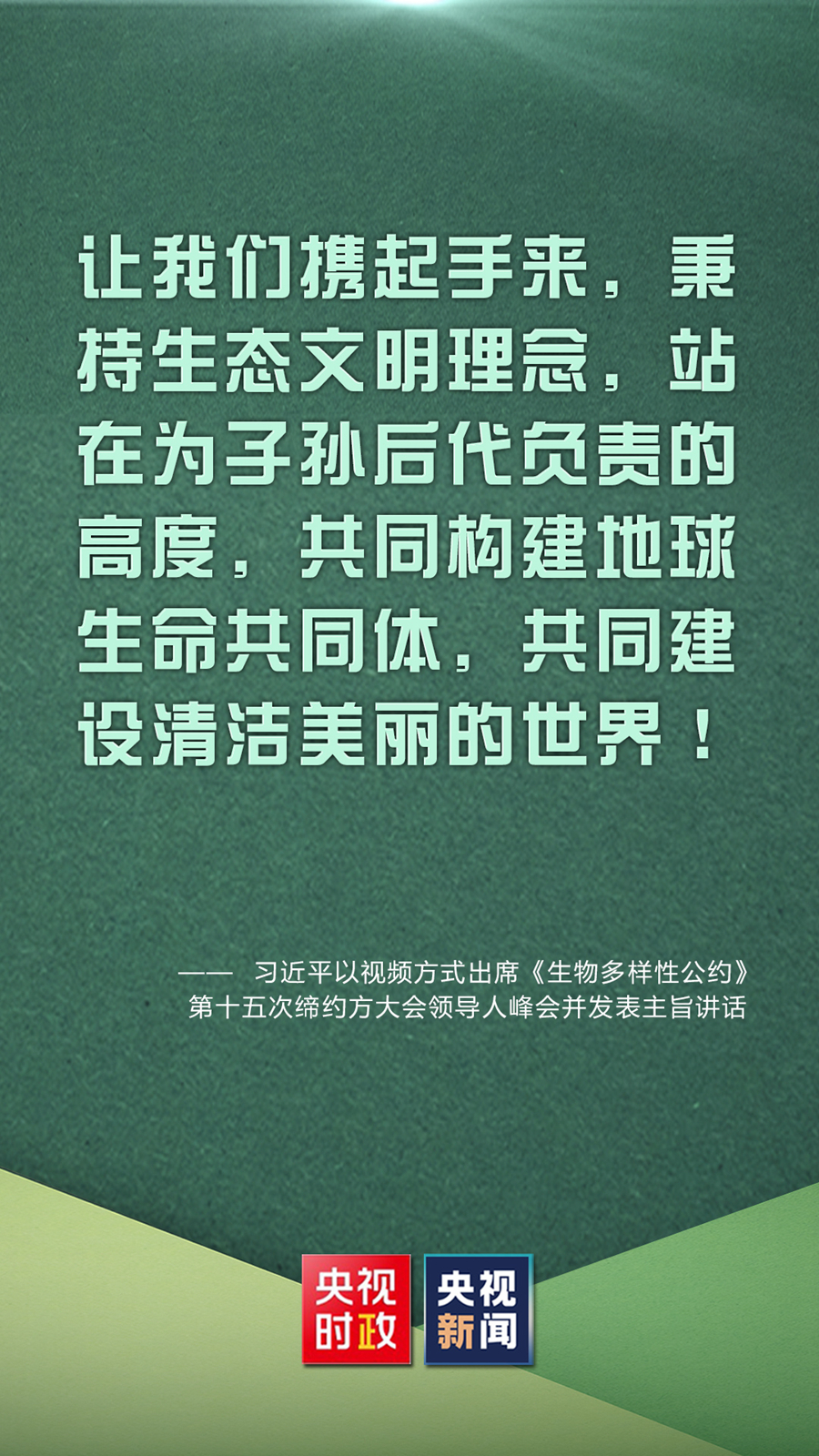 国家主席习近平12日下午以视频方式出席在昆明举行的《生物多样性公约》第十五次缔约方大会领导人峰会并发表主旨讲话。