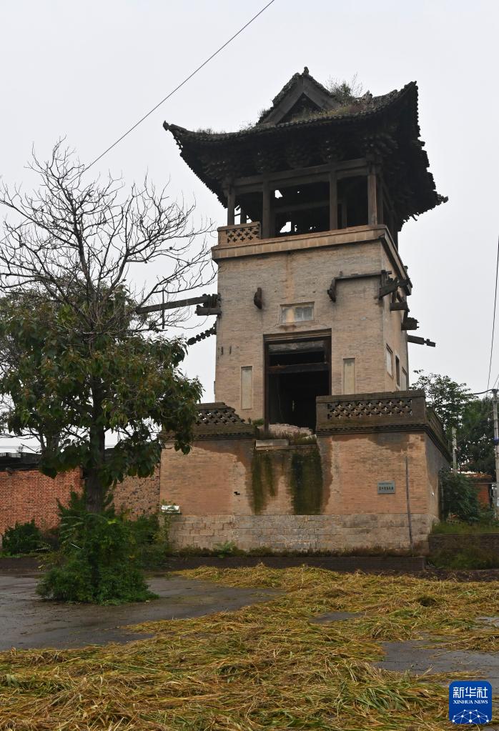 位于山西省襄汾县西中黄村的春秋楼主体结构出现倾斜(10月12日摄)。