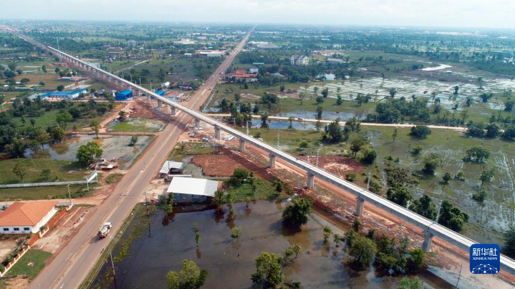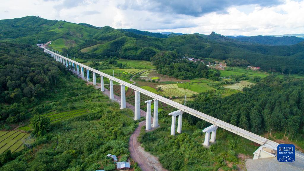 这是6月15日在老挝首都万象拍摄的中老铁路蓬通特大桥(无人机照片)。新华社发(中铁五局供图)