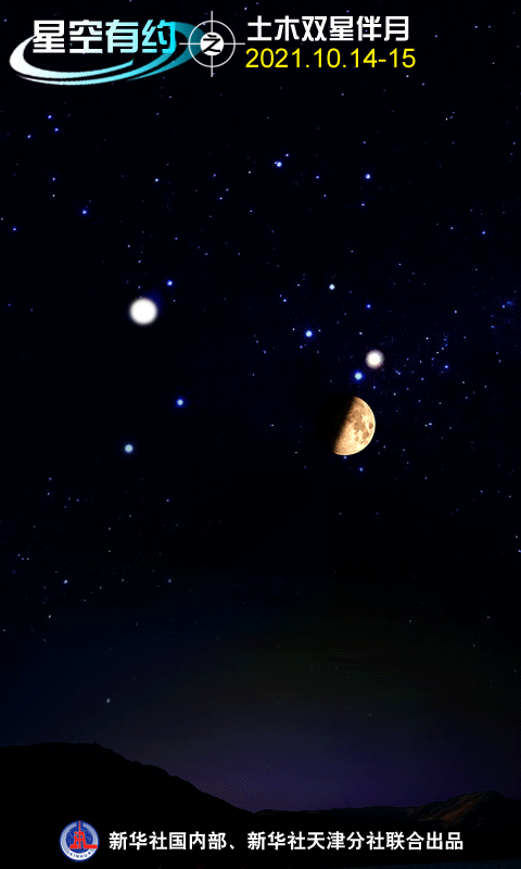新华社天津10月13日电(记者周润健)天文科普专家介绍,10月14日和15日,月球将与土星、木星相距较近。届时,这三个明亮的天体会在夜空中形成“双星伴月”天象,非常容易辨识,值得观测。