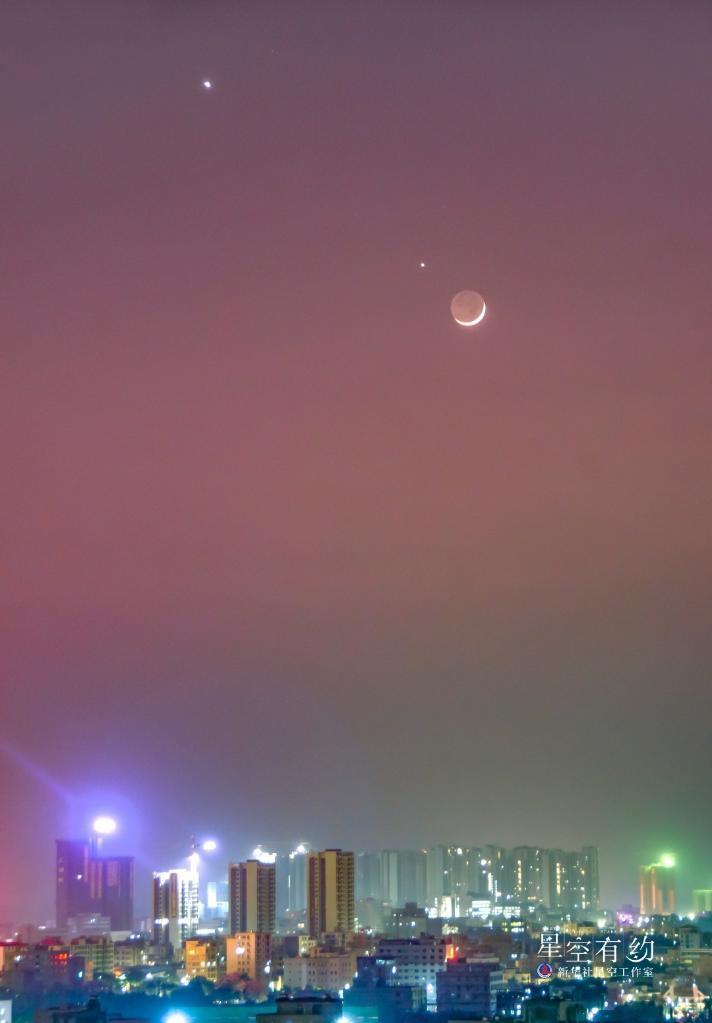 这是广东省潮州市天文摄影爱好者吴柏栋2020年11月19日在湛江市拍摄到的“土木伴月”。(本人供图)