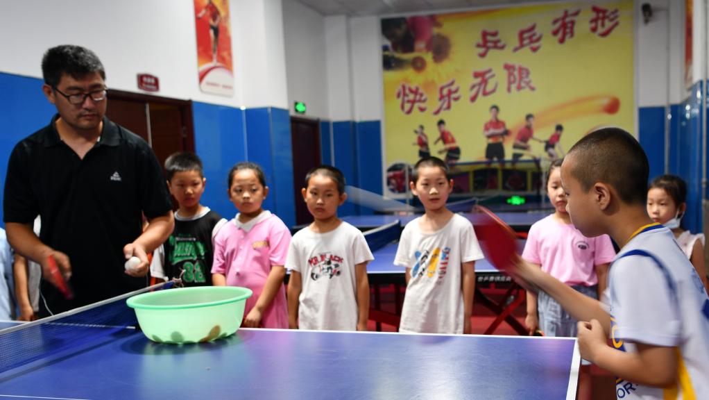 学生们在河北省石家庄市栾城区青少年校外活动中心参加乒乓球培训。新华社发(李明发摄)
