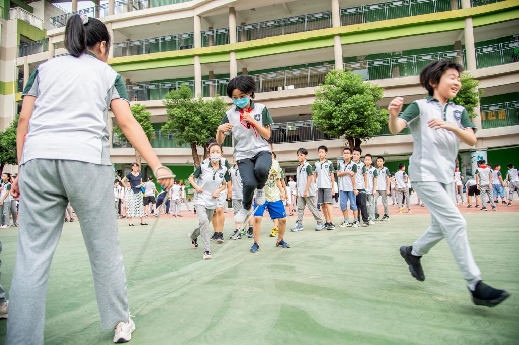 9月4日,武汉“双减”第一周,湖北省武昌水果湖第一小学孩子们在课后活动上玩“嗨”了。新华社发(伍志尊摄)