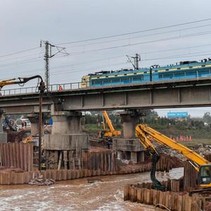 10月6日,受强降雨影响,山西省祁县境内昌源河水位上涨,洪水冲毁路基,导致南同蒲铁路昌源河大桥铁路悬空,铁路中断运行。