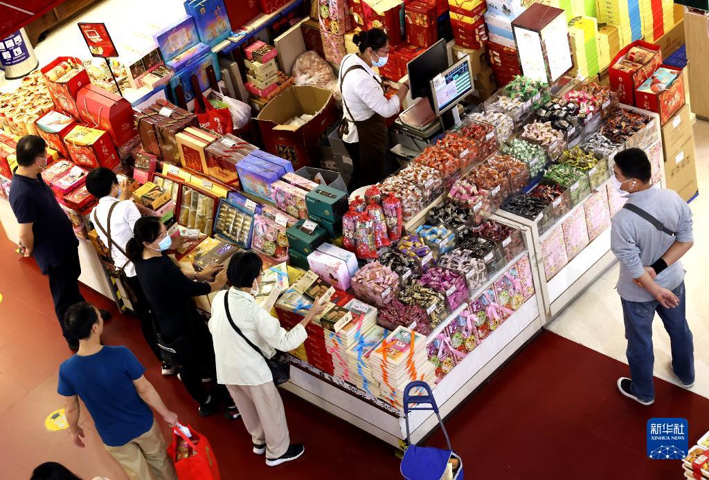 10月14日,消费者在上海市第一食品商店购买食品。新华社记者 陈飞 摄