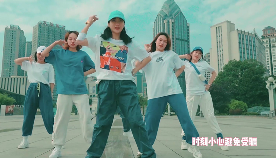新华网重庆10月15日电(王龙博)轻快的音乐节奏,不断变换的城市背景,一段街头快闪,歌词却都是网络防诈内容。近日,这段时长约三分半钟的街头快闪,让许多网友直呼新鲜。