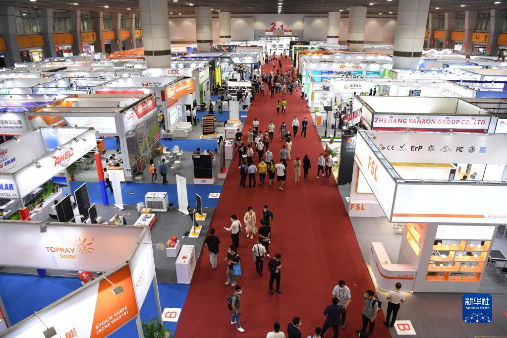 10月15日,参展人员在第130届广交会现场。新华社记者 刘大伟 摄