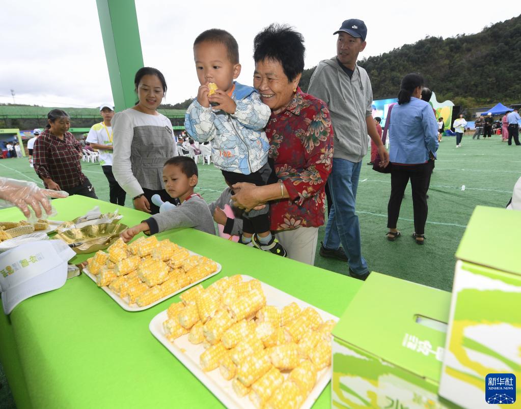 10月16日,游客和当地百姓在航头镇的玉米采摘节上品尝水果玉米。