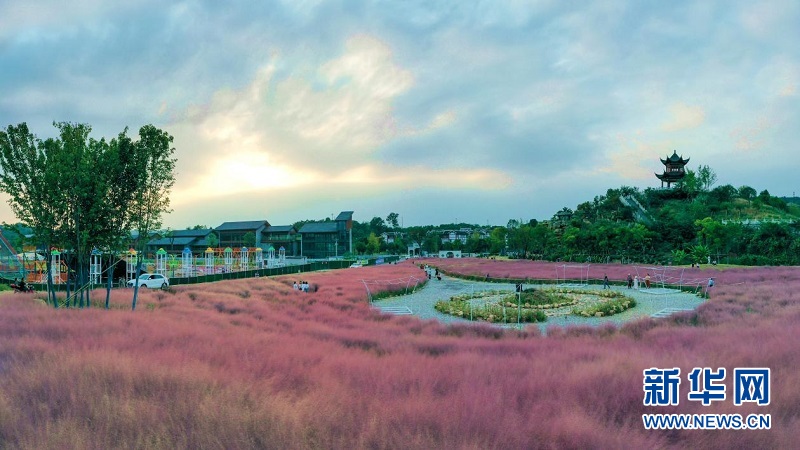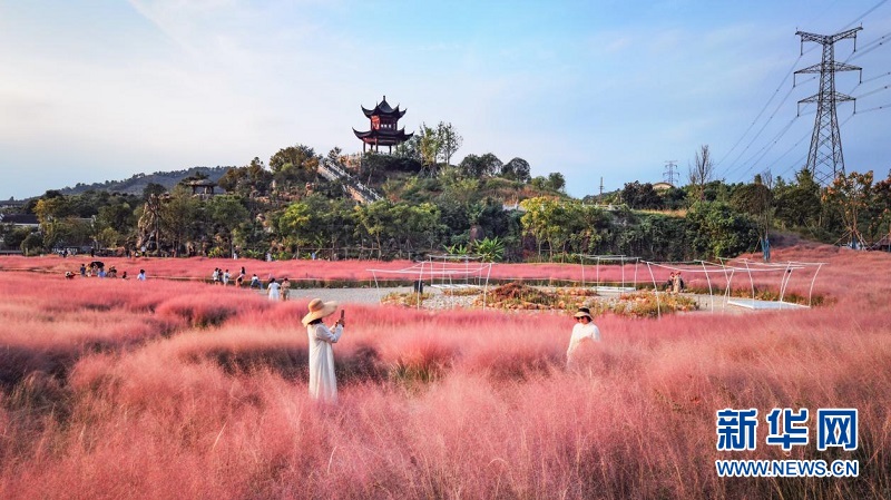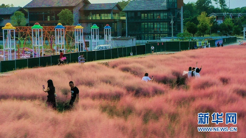 湖北省宜昌市宜都市高坝洲镇青林寺村粉黛乱子草绚烂绽放。朱灿义摄 新华网发