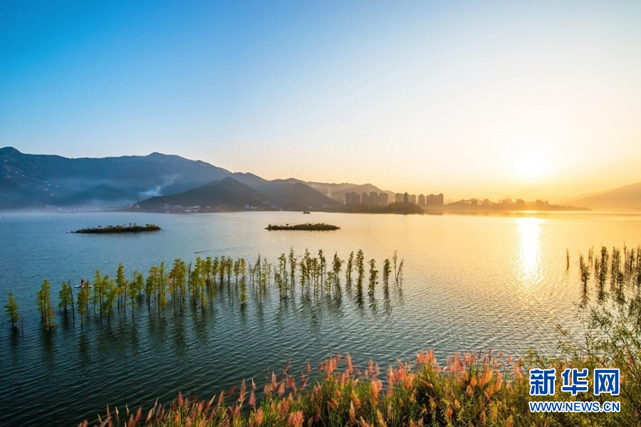 开州区汉丰湖消落带生态系统修复形成了湖在城中、城在山中、人在山水中的和谐画面,为破解消落带治理难题提供了范本。新华网发(谢开成 摄)