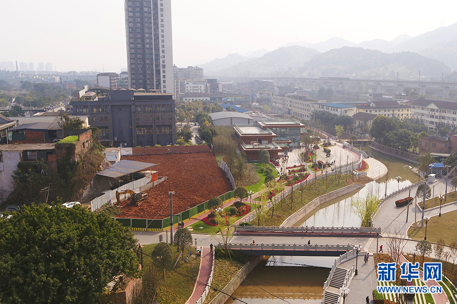 经过生态修复后,九龙坡区跳磴河从一条“臭水沟”变得水清岸绿。新华网 发