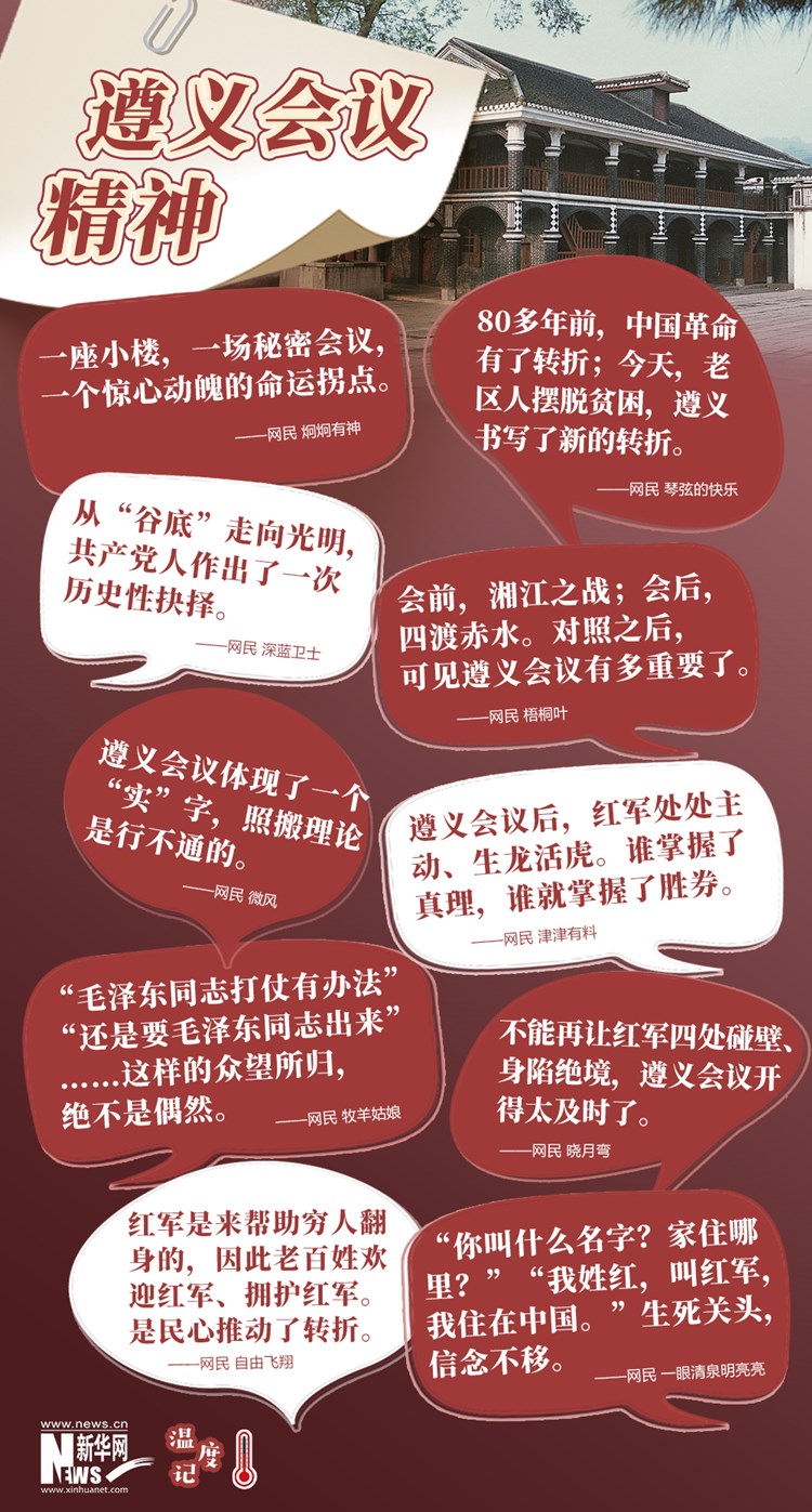 在探索中反思,在绝境中奋起,在挑战中开拓。遵义会议铸就的精神跨越时空、历久弥新,这是革命先烈用鲜血和生命换来的宝贵经验。在中华民族追求独立、解放和振兴的历史进程中,遵义会议精神始终是我们的丰厚滋养,是鼓舞和激励中国人民不断攻坚克难、从胜利走向新的胜利的强大动力。