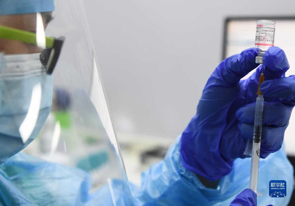 在广州番禺区健康管理中心接种门诊,医务人员进行新冠疫苗接种准备工作(10月18日摄)。