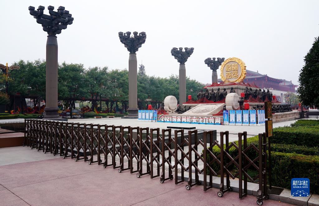 10月19日,西安市大唐不夜城步行街暂停开放。新华社记者 刘潇 摄