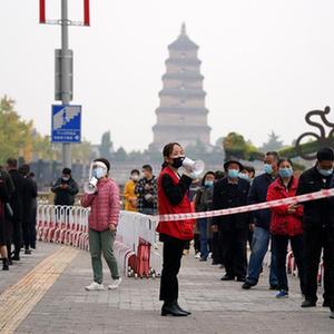 时近霜降,寒意渐浓。18日清晨,西安市莲湖区西关街道的工作人员已开始布置场地,搭建帐篷,为核酸检测做准备。为了提高效率,街道社区干部、志愿者们一起帮助医护人员为试管贴条码。西关街道办事处主任昝晓娟说:“我们凌晨4时接到启动重点区域核酸检测的通知,大家争分夺秒,人员、物资、设备迅速到位,5个检测点10时已开始为群众进行核酸检测工作。”